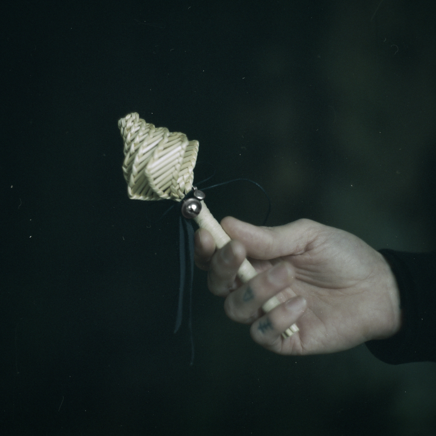 A Key to Hell talisman, a Sombre Graal amulet and a Rustique medallion, paired with some Shízhánee’ rings, a pair of Rhabdomancy Divining Rods and a Crepitacula Folk Rattle (woven by Les.Nuances.Fauves, adorned with a Rustique medallion).