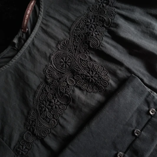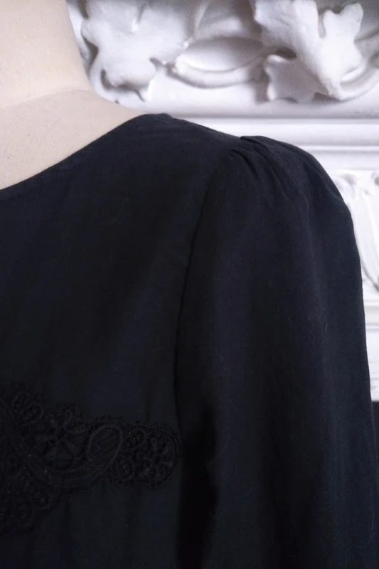 Blouse Victoriana noire ※ coton et appliqué en dentelle