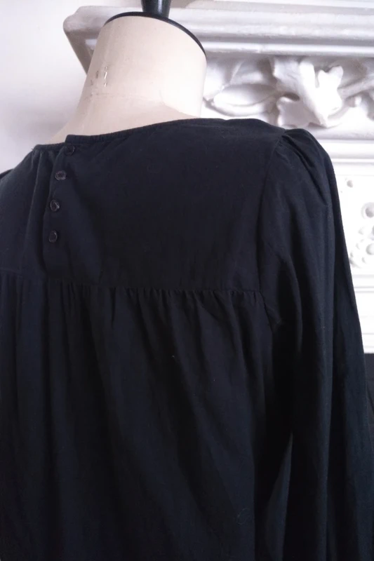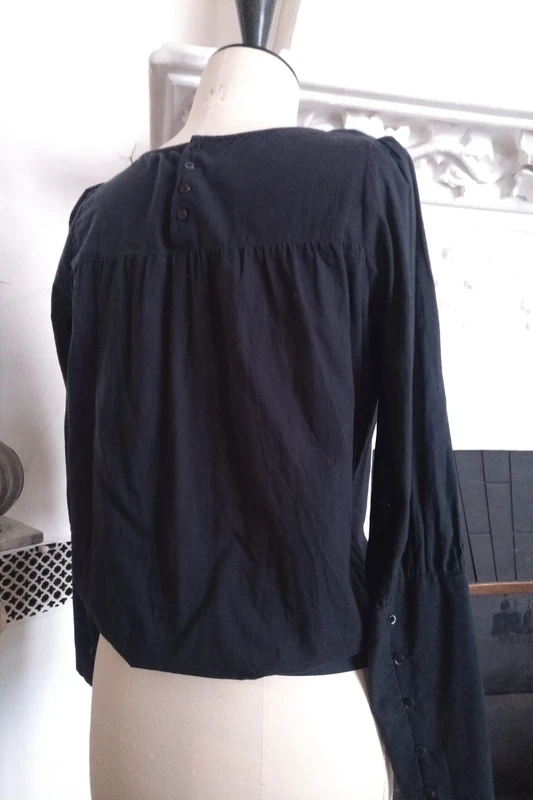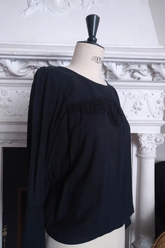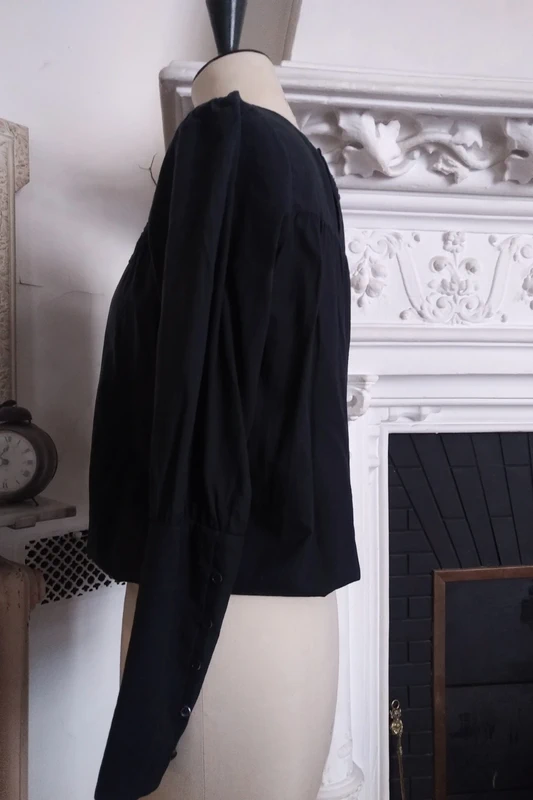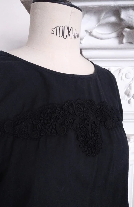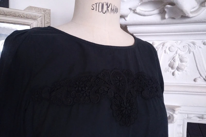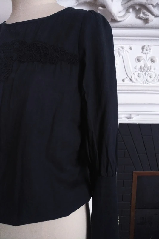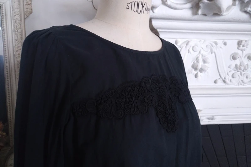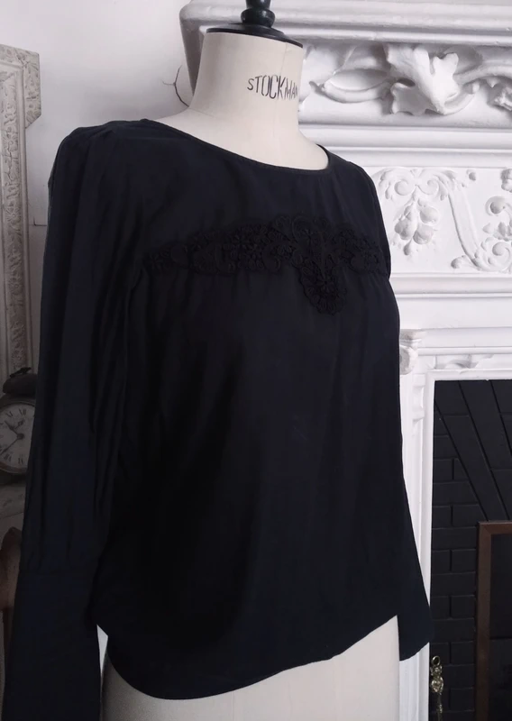 Blouse noire en coton, inspiration Victorienne / Edwardienne avec application en dentelle.