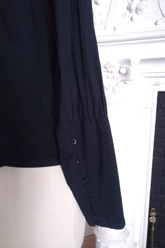 Long, slightly puffed sleeves with long buttoned cuffs.