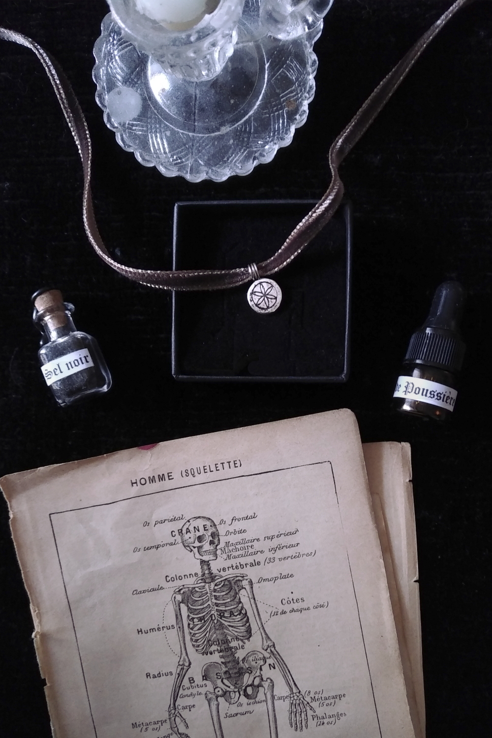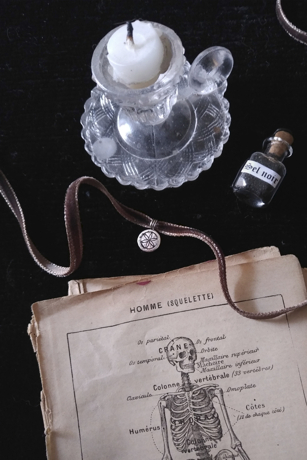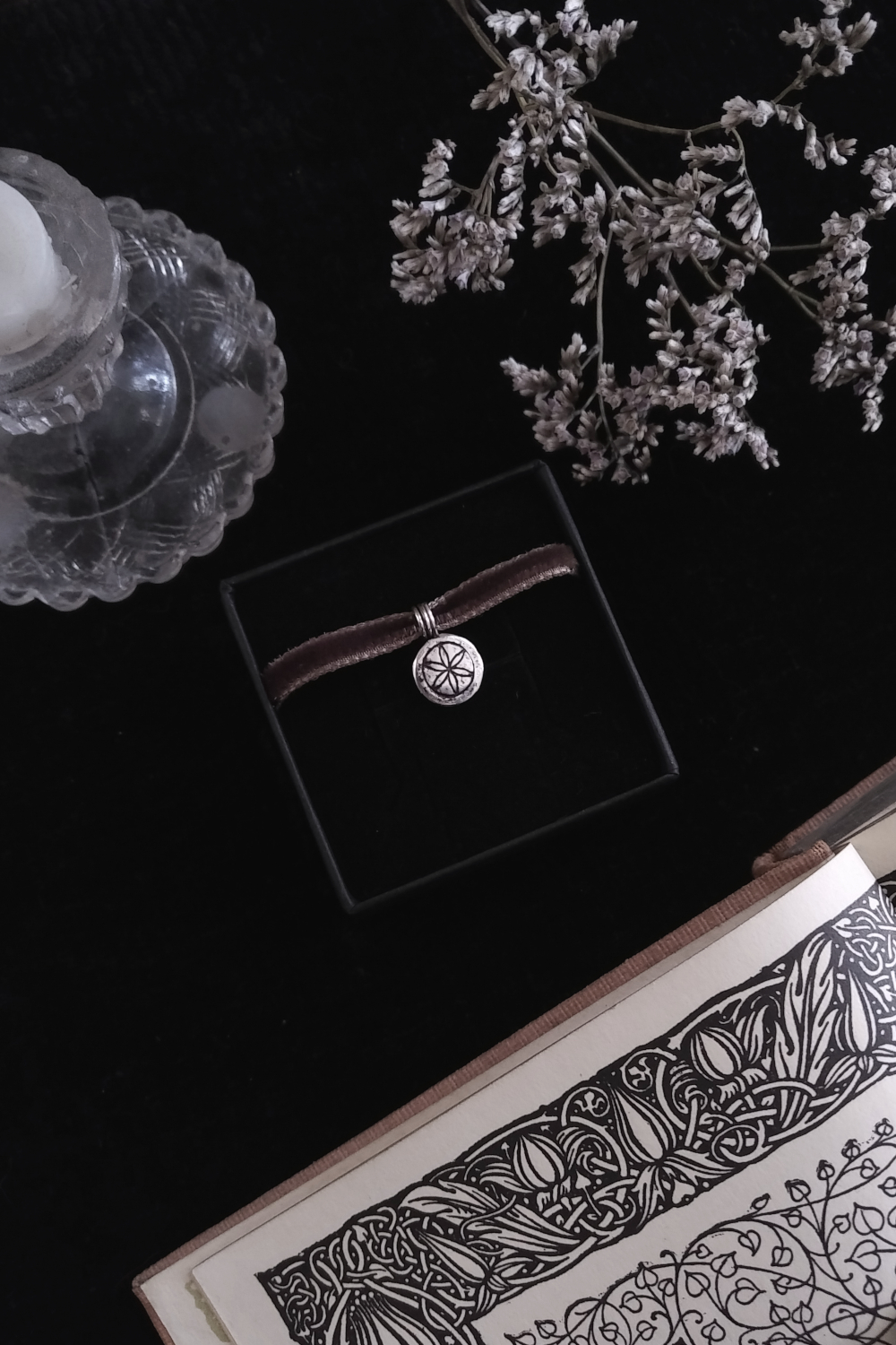 – Black, garnet or brown velvet ribbon: 70cm / 27,5 inches